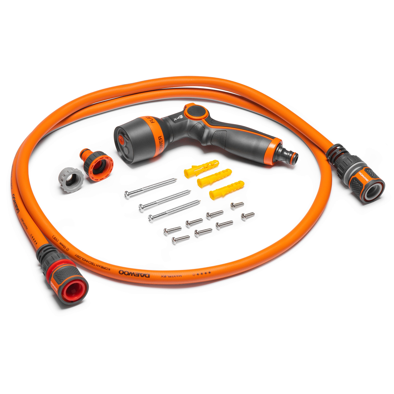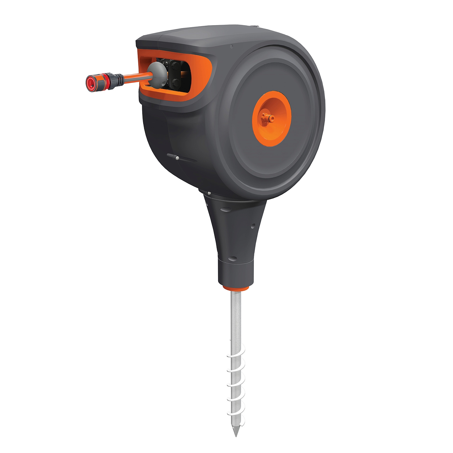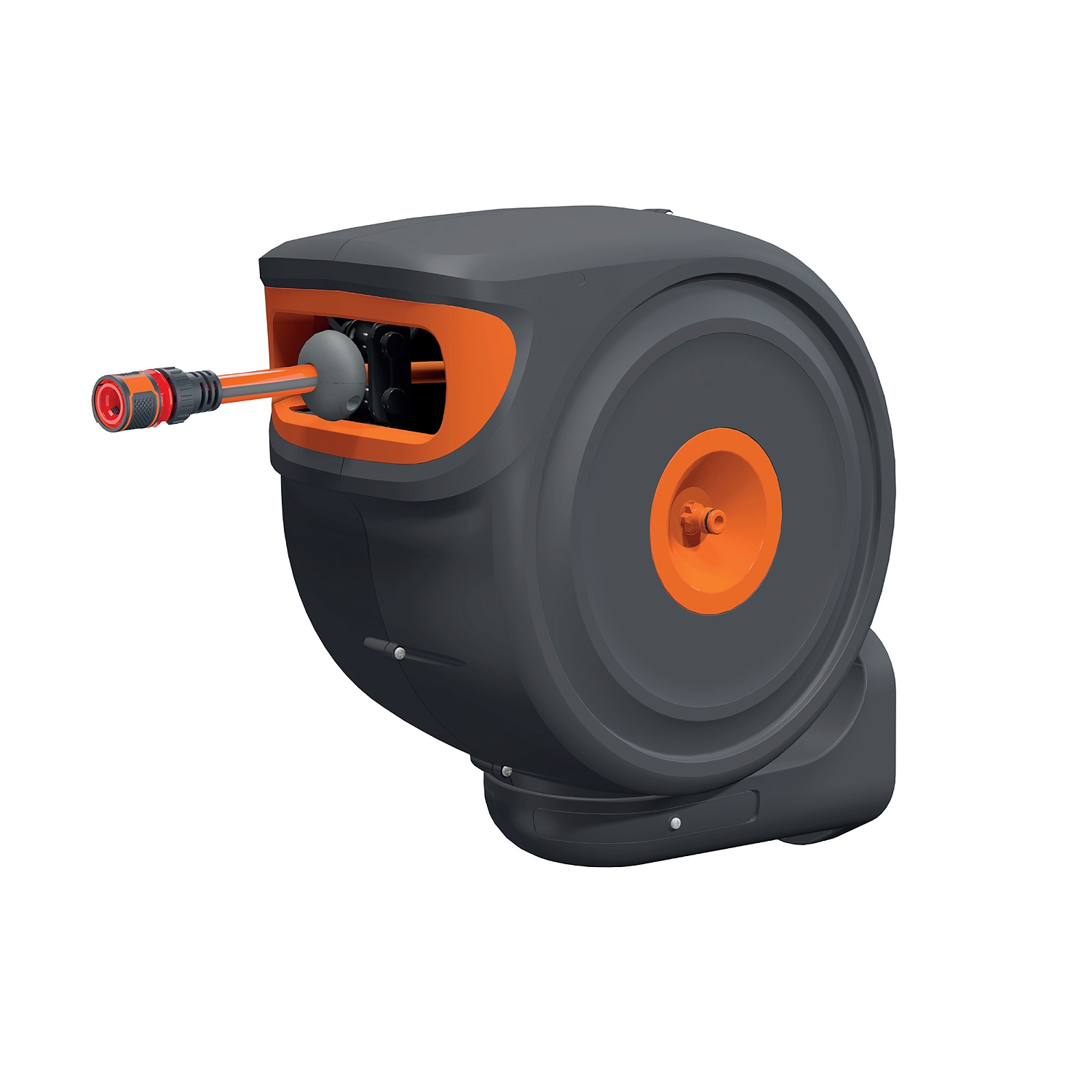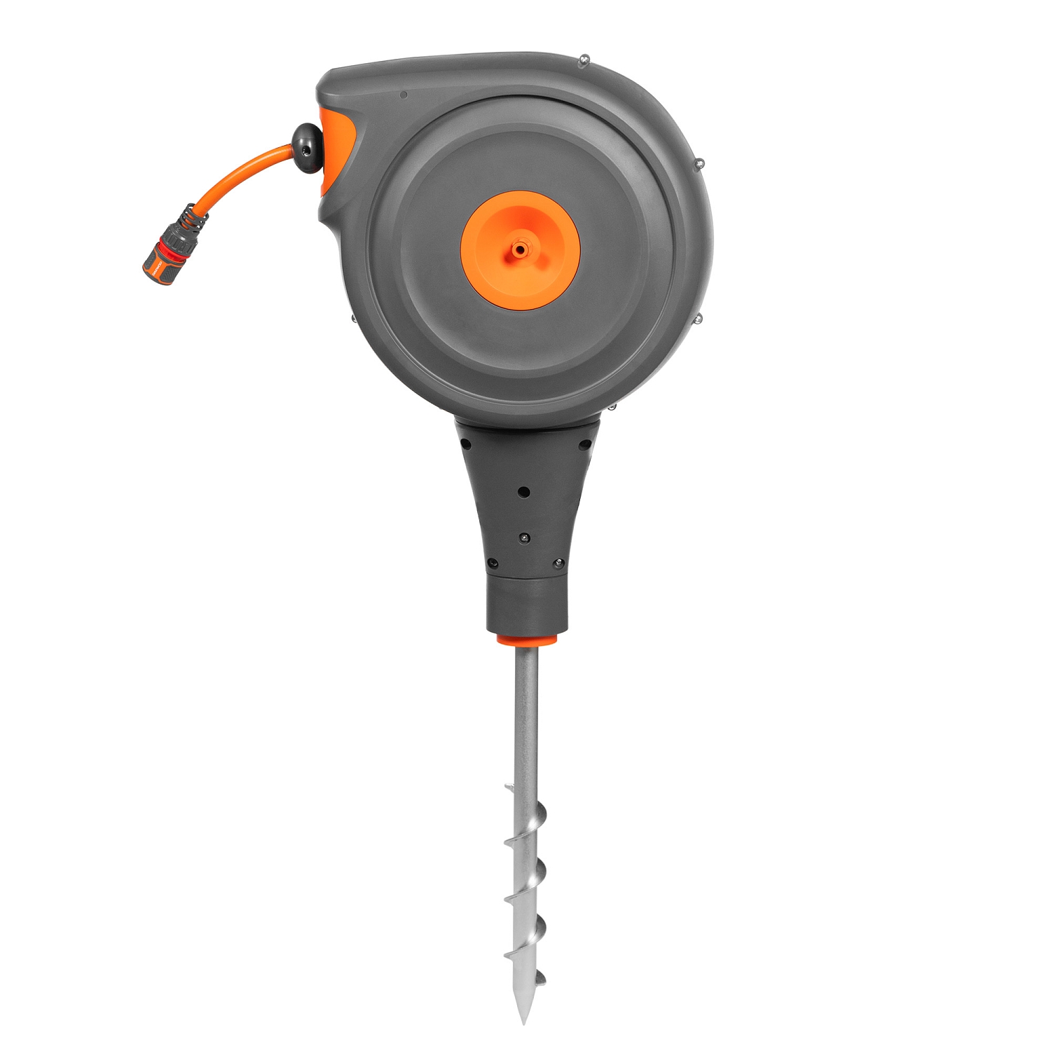 - 25м шланга позволяют использовать катушка на участках от 150 до 500 м2.