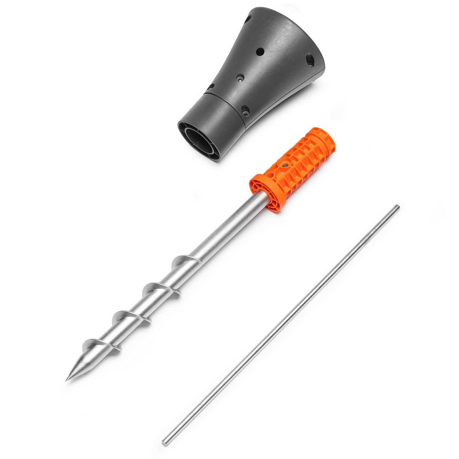 - Пика для грунта позволяет разместить катушку в любом удобном месте на газоне с возможность поворота на 360°.