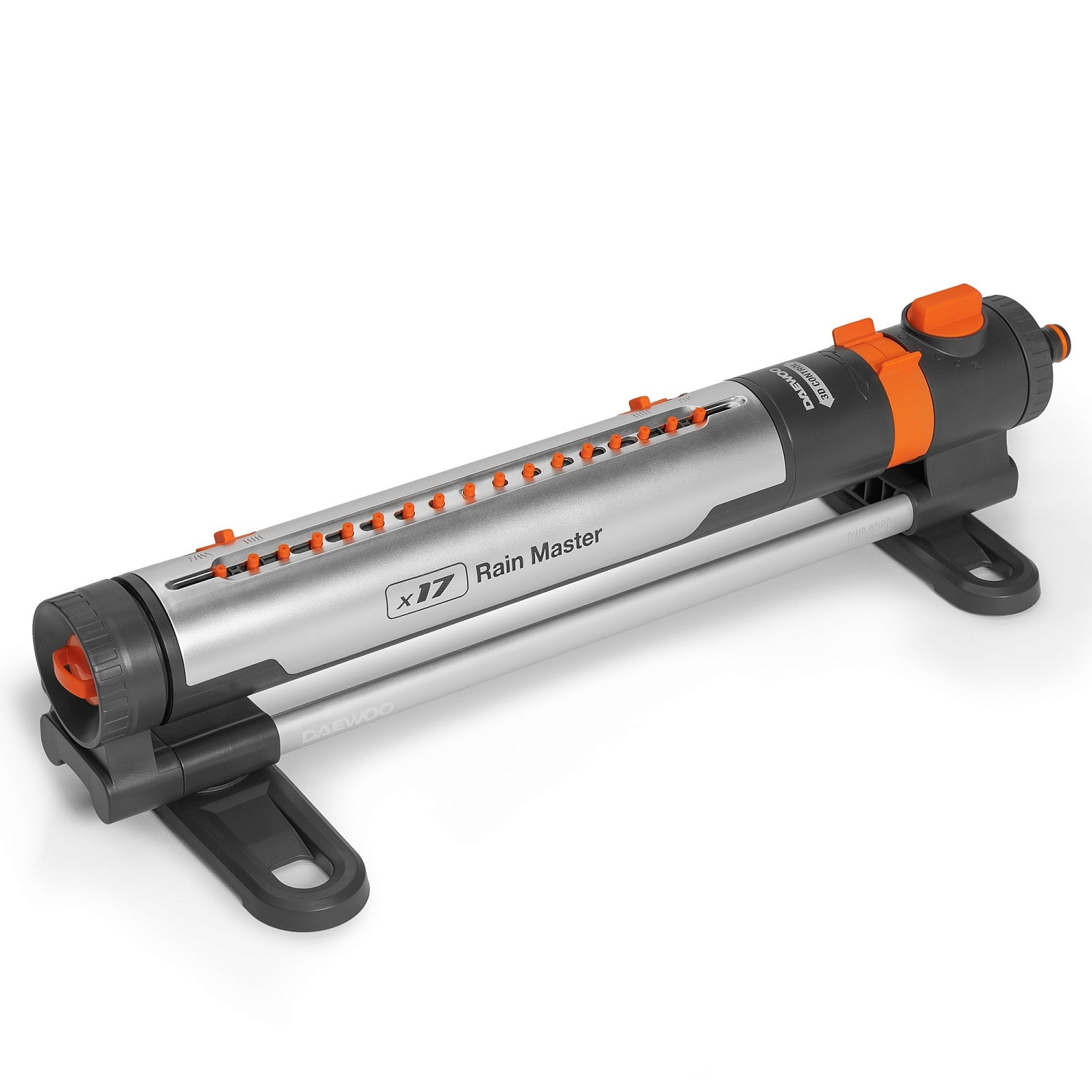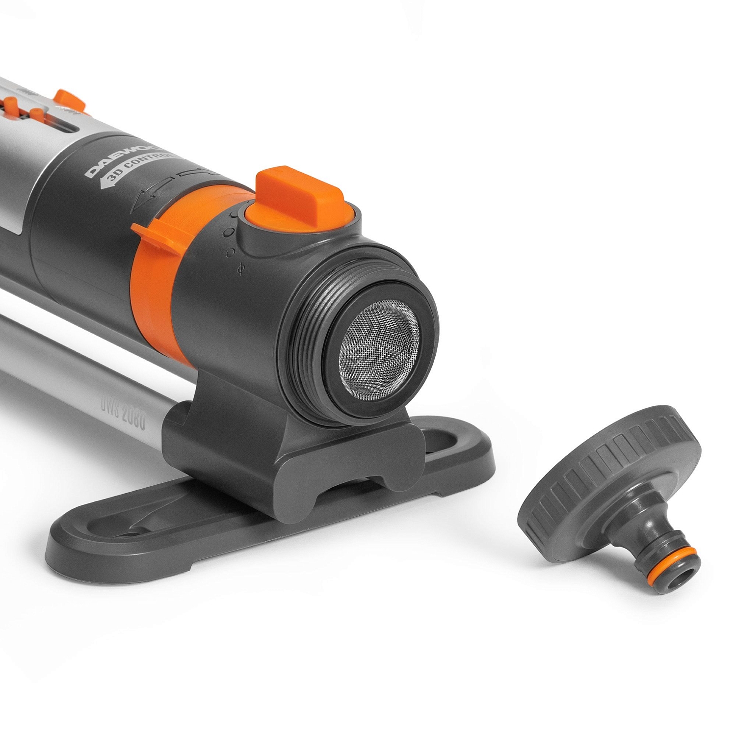 Удобные регуляторы позволяют настроить угол наклона форсунок, направление их движения и дальность струи, чтобы полить определенный сектор или заданную площадь от 90м² до 320м².