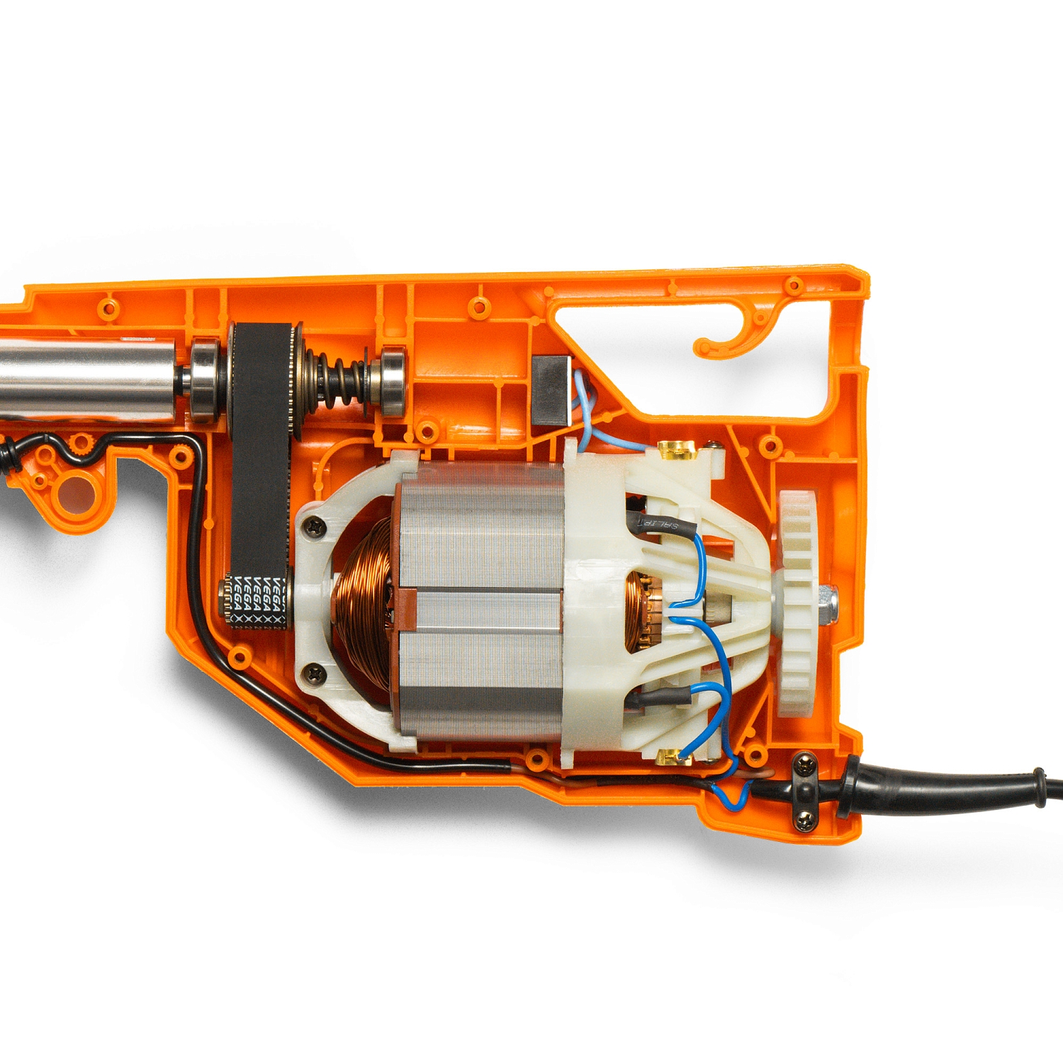 Электрический двигатель обеспечивает тихую работу триммера, что является важным преимуществом по сравнению с бензиновыми аналогами. Отсутствие вредных выбросов делает его экологически чистым инструментом, подходящим для использования в жилых зонах.