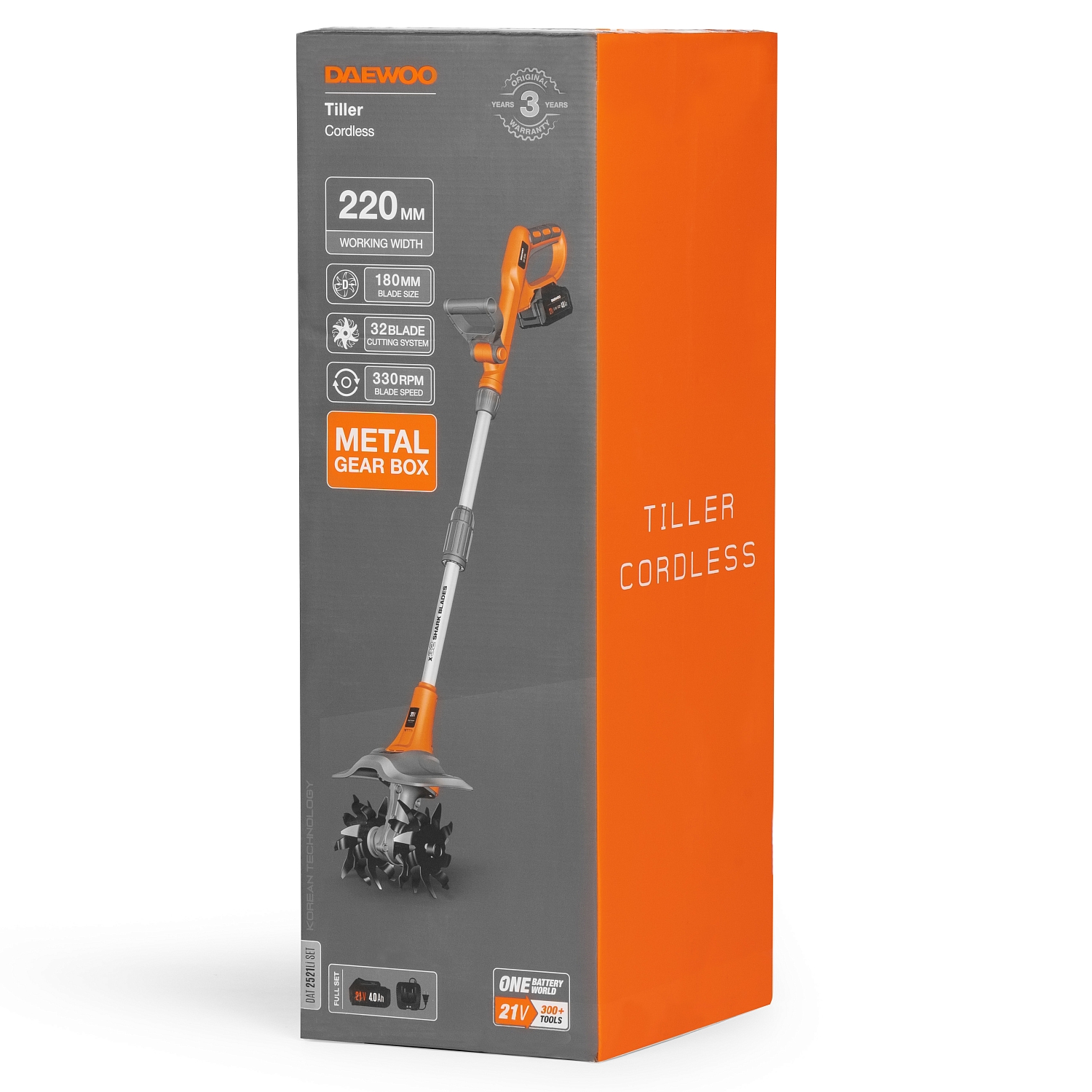 Культиватор совместим со всеми аккумуляторными инструментами и батареями DAEWOO линейки 21В