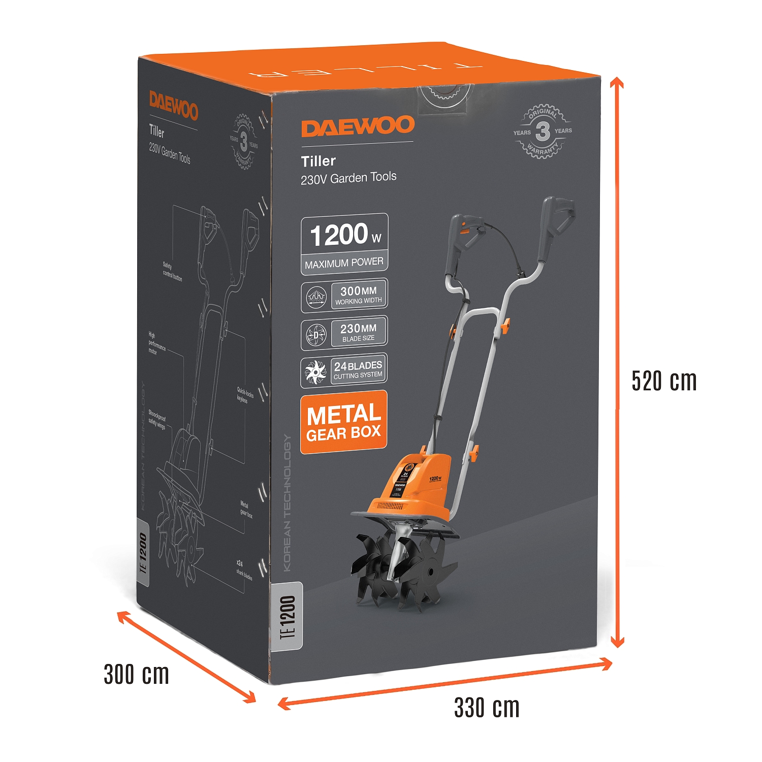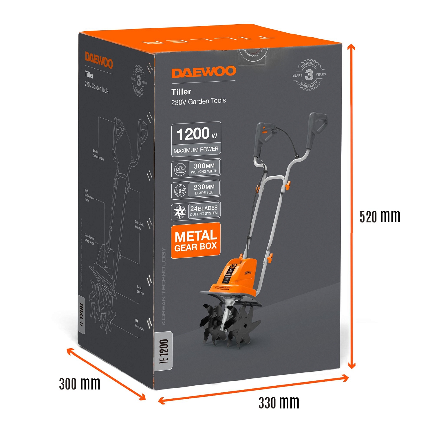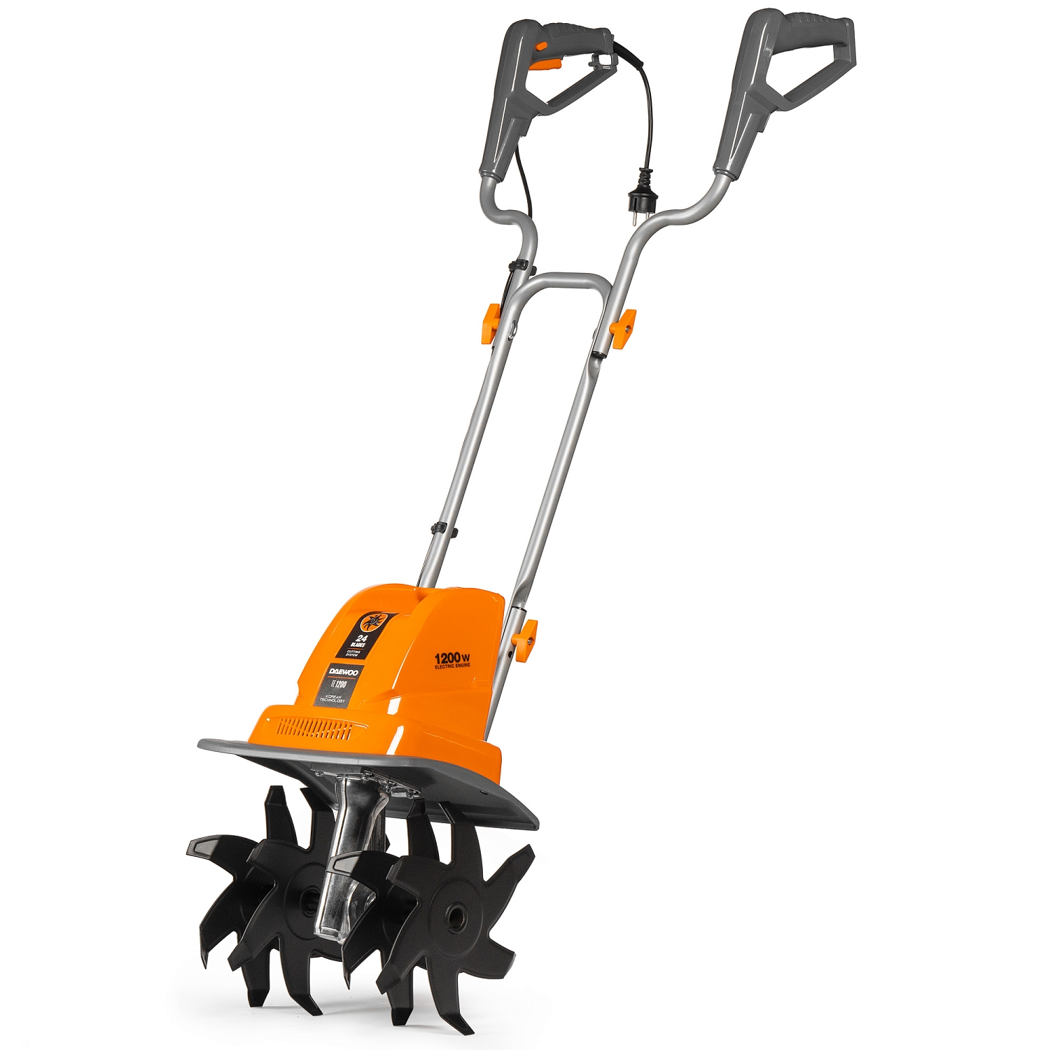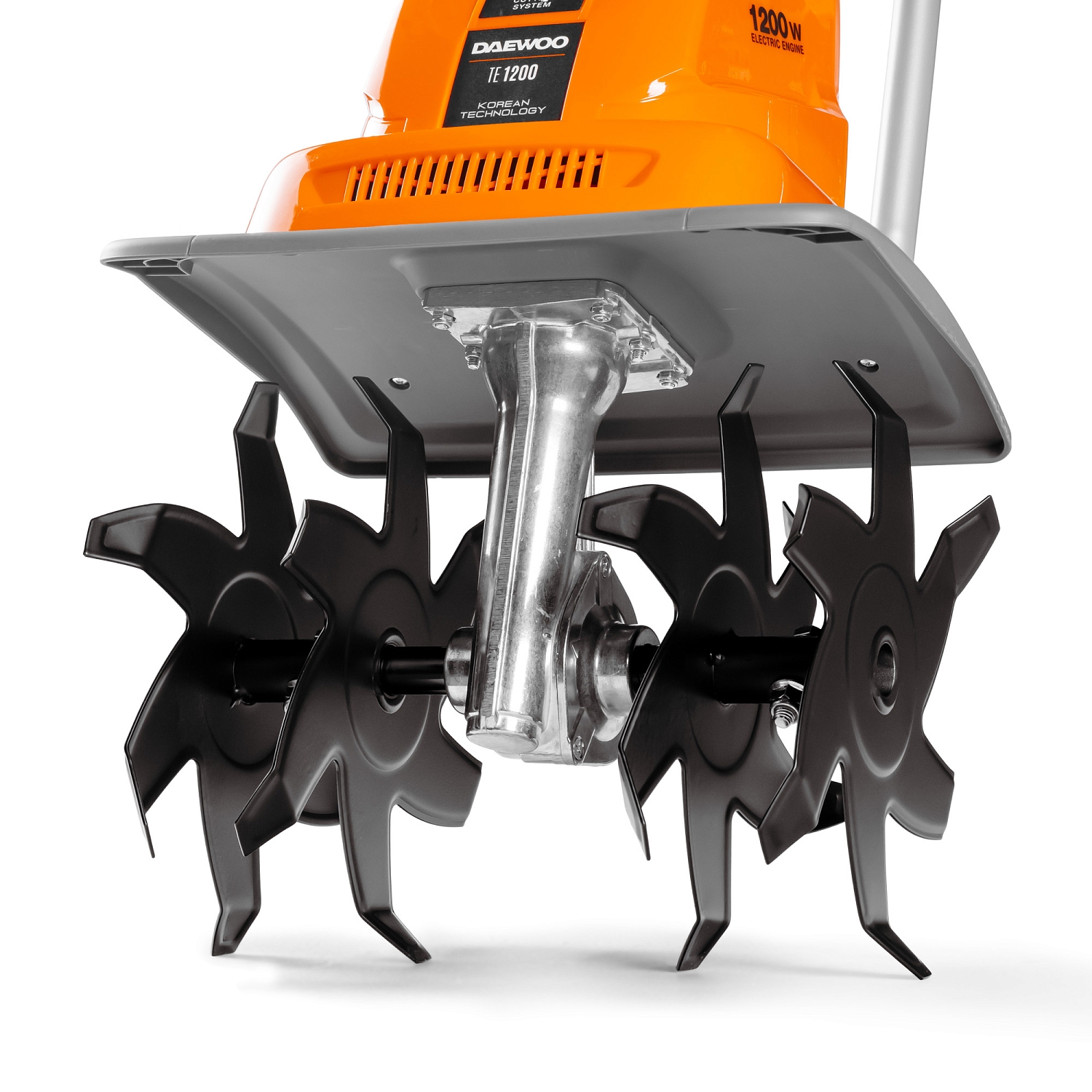 Система из 24 ножей загнутых в разные стороны, расположенных на четырех фрезах в сочетании с высокой скоростью вращения 360 об/мин, позволяет культиватору производить вспахивание почвы на глубину 23 сантиметра.