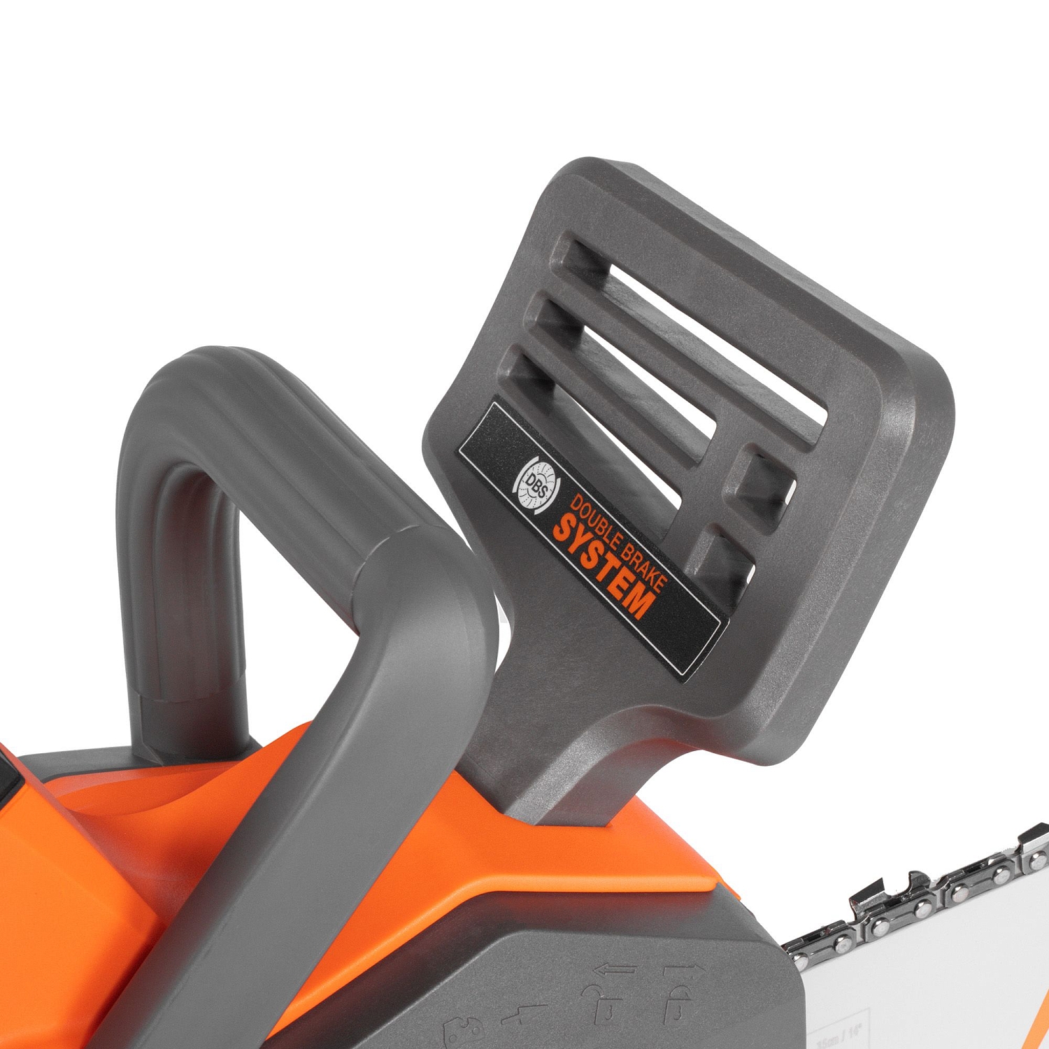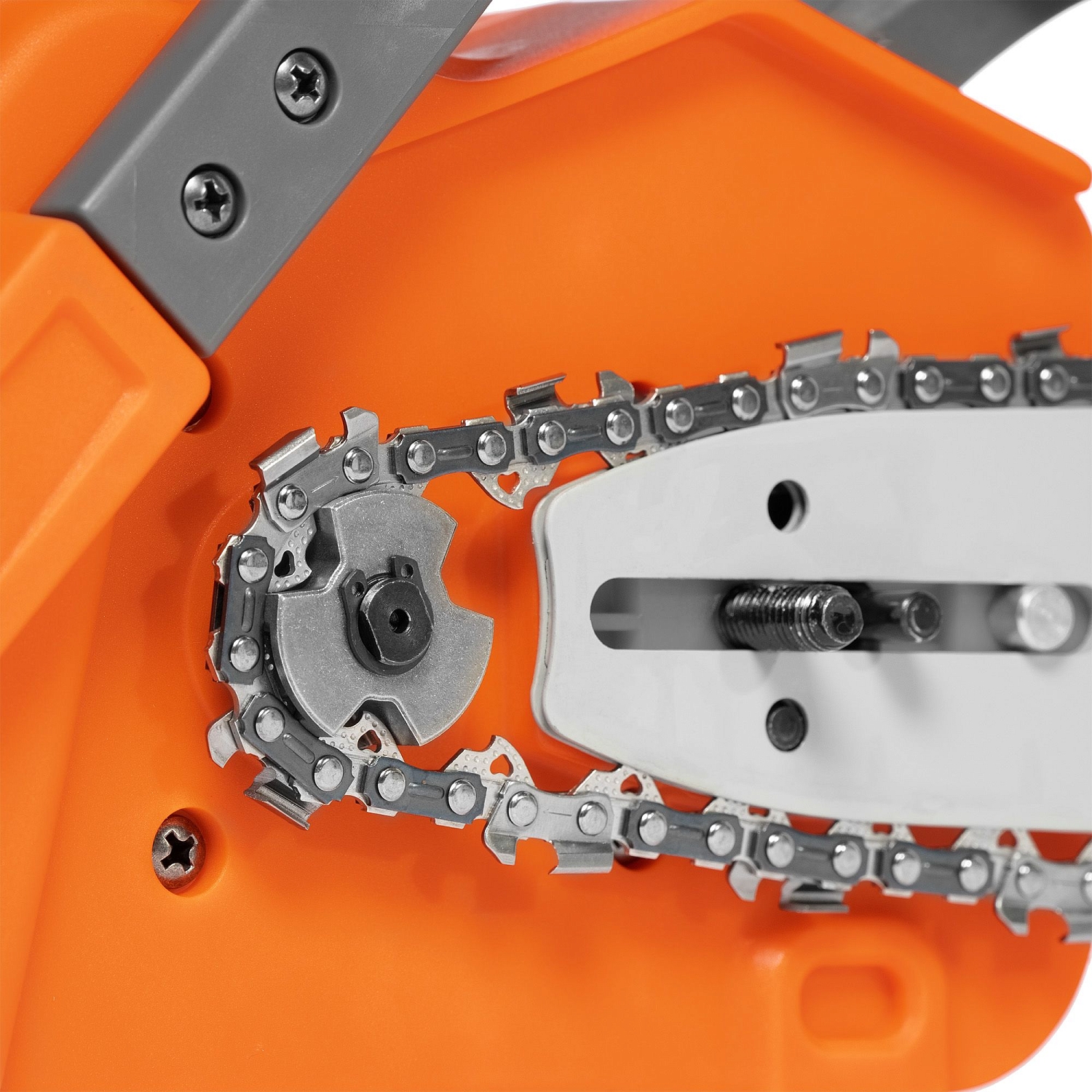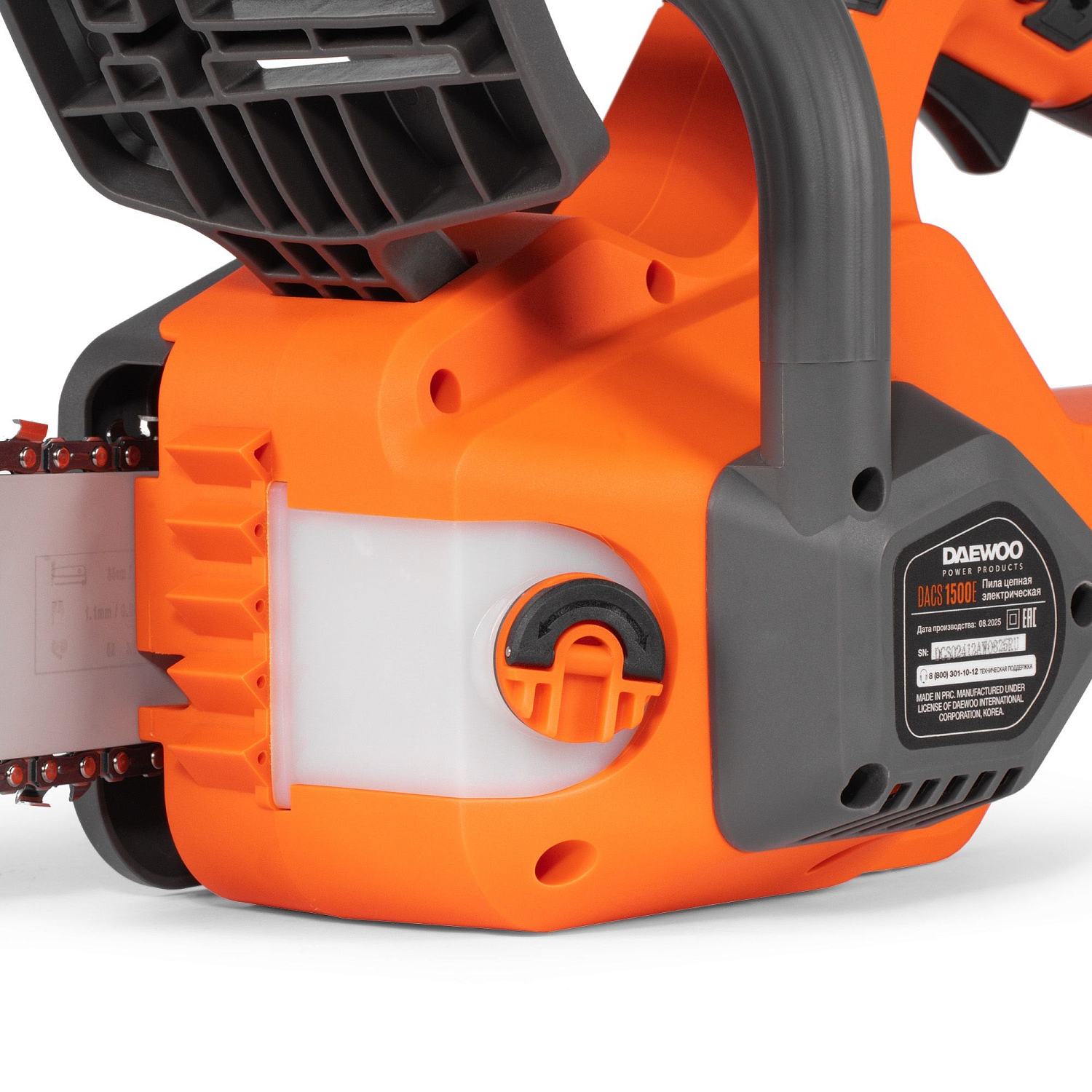 Безинструментальная установка и натяжение цепи на электропиле значительно упрощают подготовку инструмента к работе и техническое обслуживание. Быстрое и простое регулирование позволяет сэкономить время и силы, повысить безопасность и продлить срок службы пилы. Эта особенность особенно полезна при длительных работах, требующих периодической подтяжки цепи.
