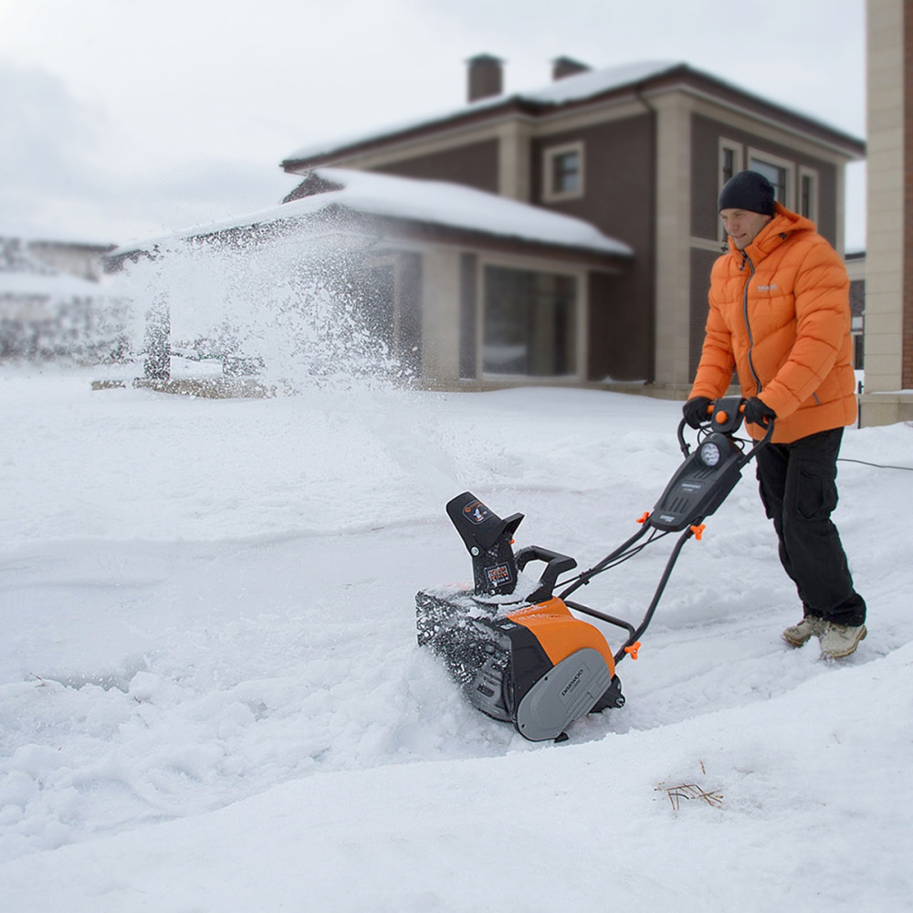 Быстро и чисто убирает. Мощности достаточно. Убирать лучше, как выпадет снег, в течение пару дней. Когда убирает снег едет практически сам за счет загребания снега, главное, чтобы снизу ничего не мешало ножу идти по поверхности.