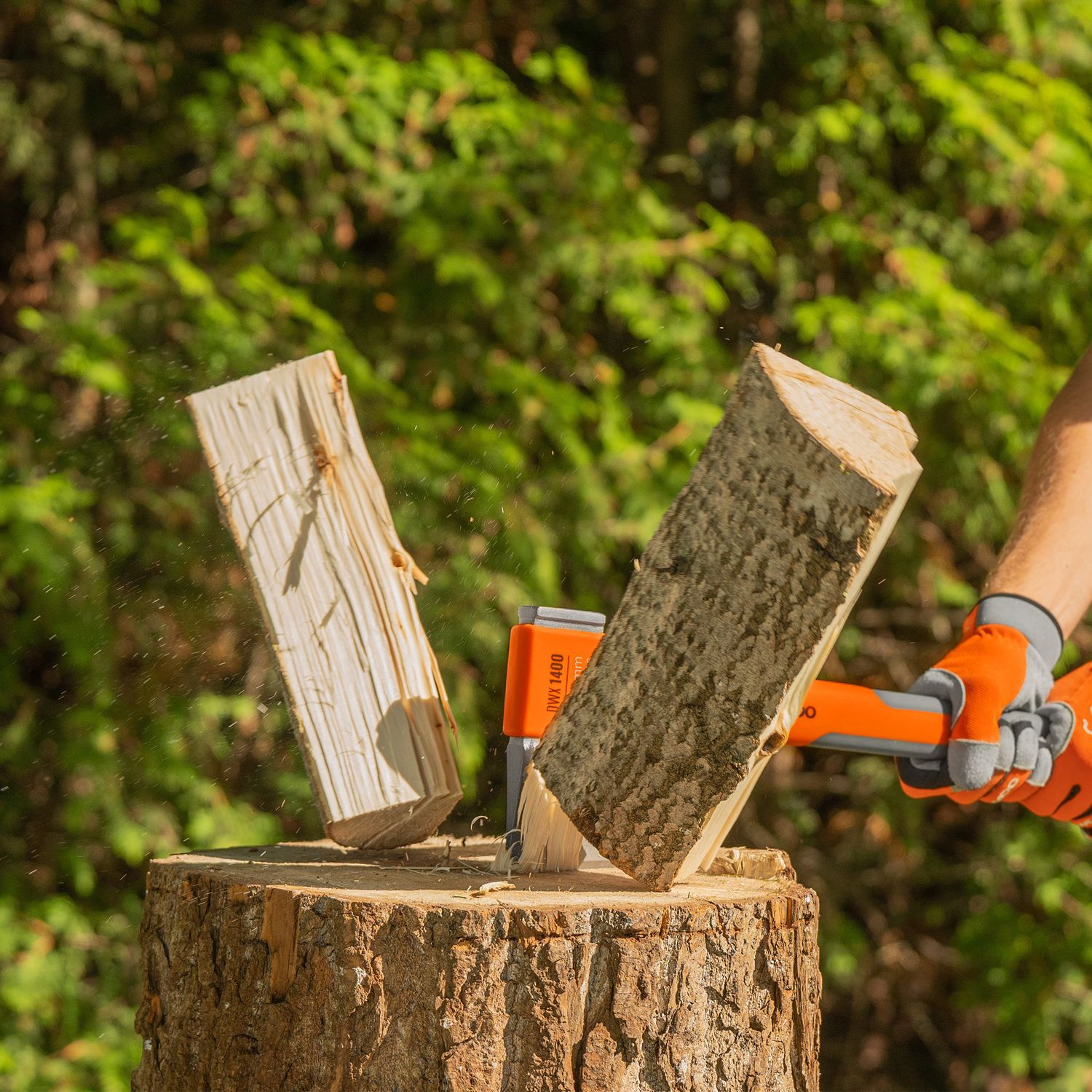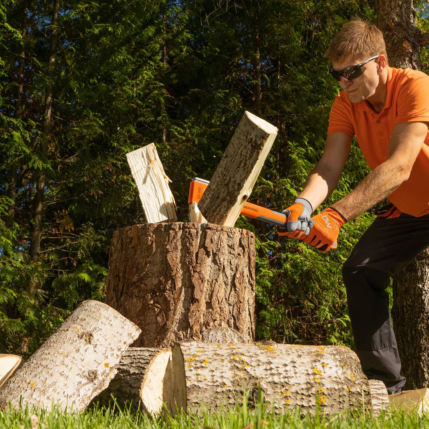 Топор имеет оптимально сбалансированный центр тяжести, что максимизирует силу удара. Надежное соединение рукояти и лезвия делает работу с инструментом безопасной. Накладка из нержавеющей стали защищает рукоятку в случае промаха.